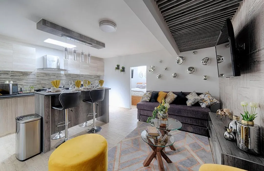 Das 3-Sterne-Hotel Departamento Amueblado Master Suite Aguascalientes, das mit einem Jacuzzi und einem Whirlpool lockt, liegt etwa 14 Fußminuten vom Jardín de San Marcos entfernt.
